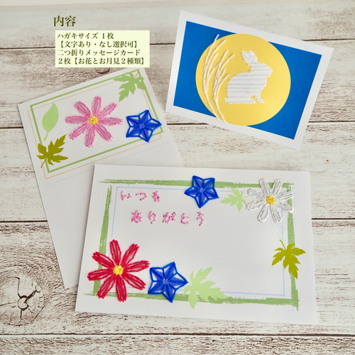 敬老の日 ギフト 刺繍糸付き 紙刺繍キット 二つ折りメッセージカード バースデーカード 秋 秋桜 桔梗 コスモス 月見 キット 糸の装身具ステッチマーク 通販 12438276Creema クリーマ。