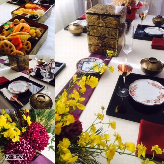 お正月のテーブルコーディネート食空間プロデュース花生活空間。