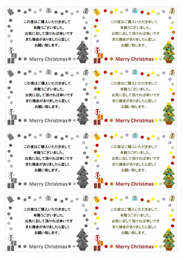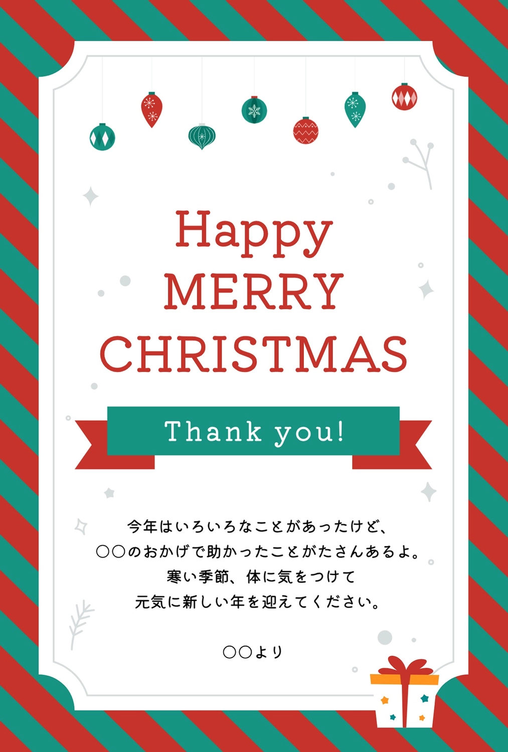 サンキューカード クリスマスバージョン1 ひな形無料の雛形・書式・テンプレート・書き方ひな形の知りたい。