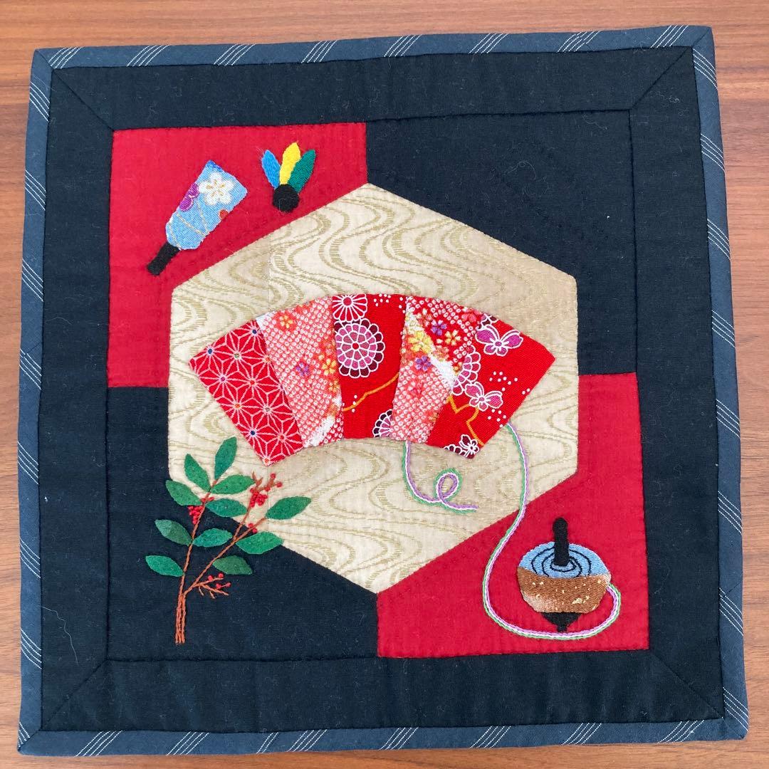 手作りお正月飾りの背景にパッチワーク和風タペストリーキットが人気パッチワーク和風キットタペストリーのネット販売!作家のオリジナル。
