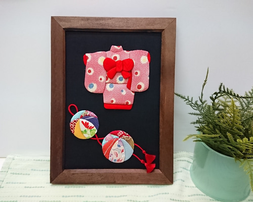 手作り押し絵のタペストリー『お正月』 着物と手まり ちりめん押し絵 お正月 タペストリー・壁掛け 夢。