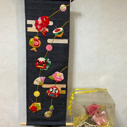 121 お正月タペストリー ちりめん細工 吊るし飾り 吊るし雛 古布 楽天市場 吊りタペストリーお正月手作り。