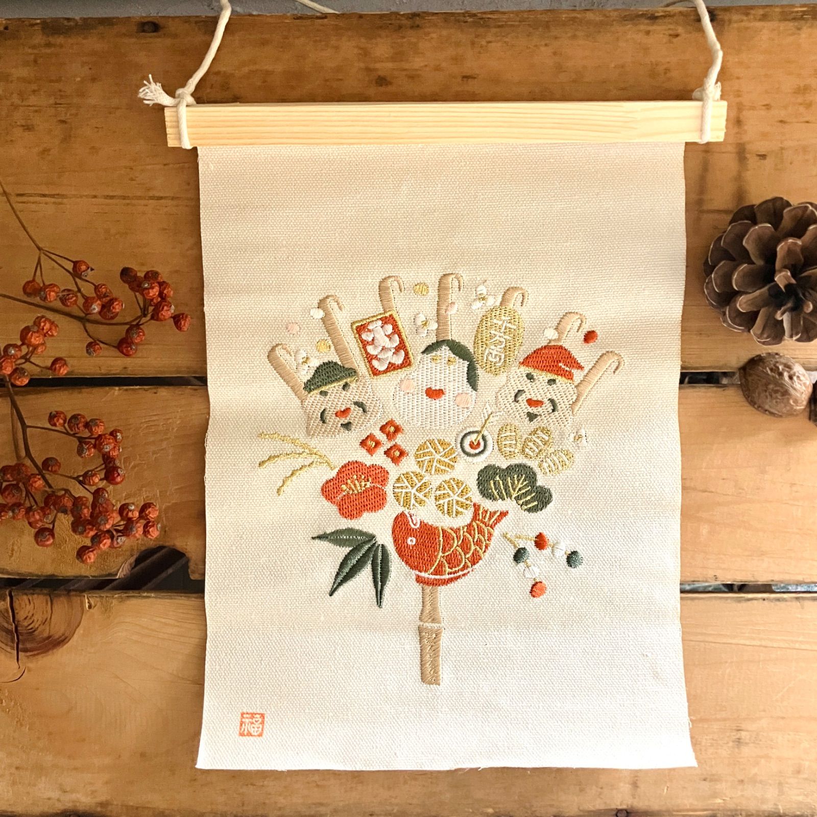 お正月タペストリー♪Cottoncraft Dandelionの手作り雑貨とお守り袋♪。