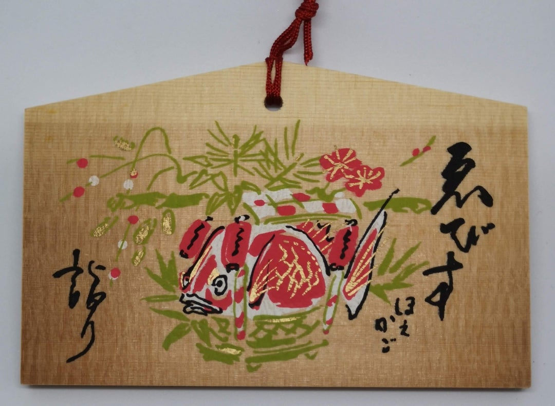 Yahoo!オークション -福摂津今宮戎神社 絵馬型申土鈴 大きなタイ。