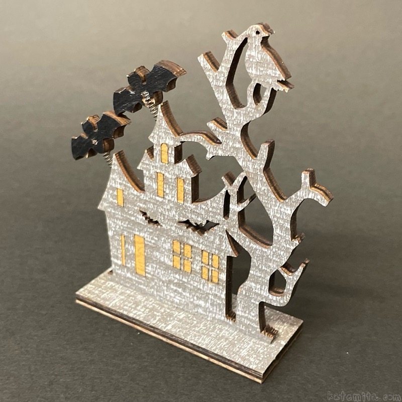 100均の『ゆらゆらハロウィン ハウス スタンド』が木のオシャレな飾りで可愛い!買てみた。