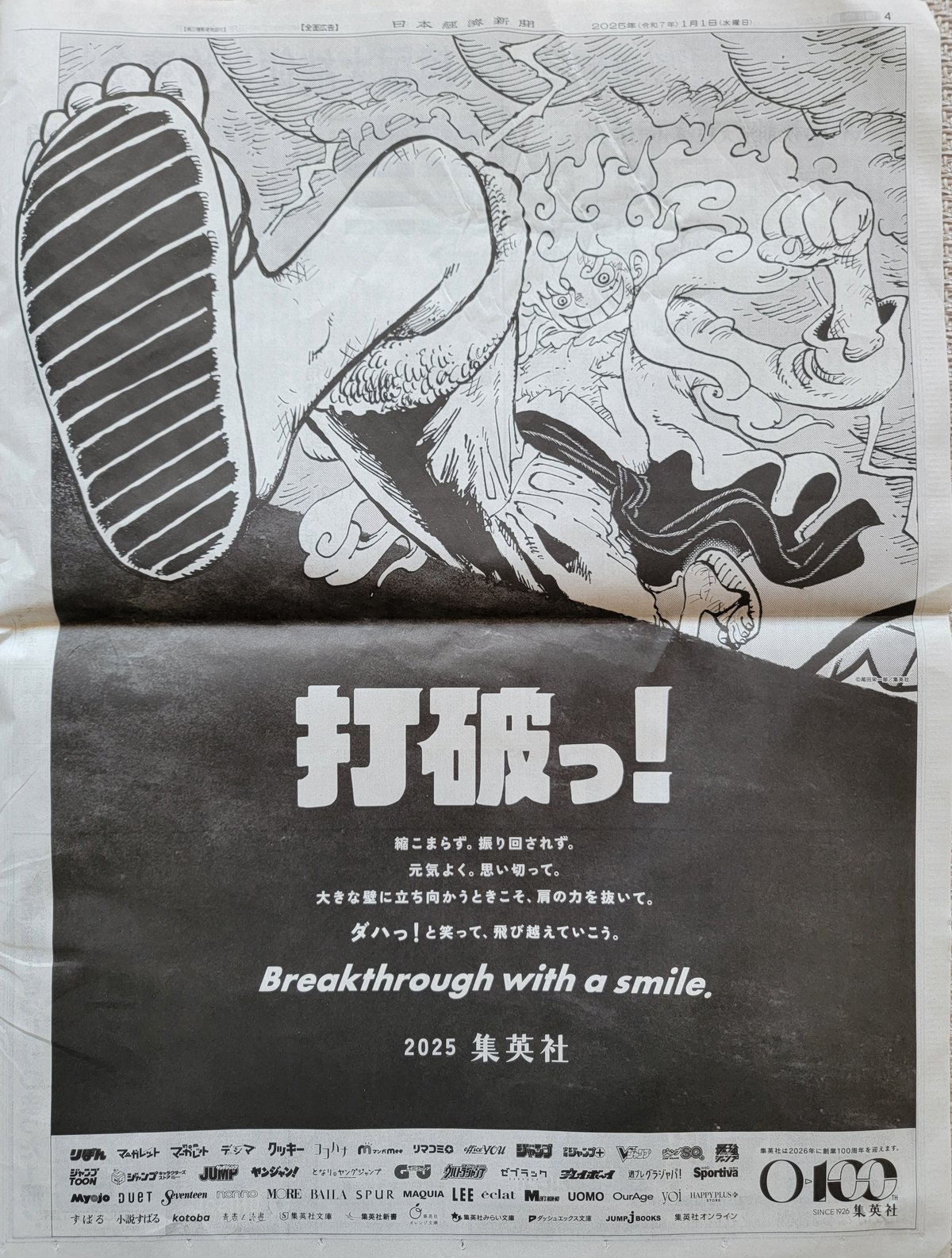 集英社の2025年元日新聞広告です。今年もよろしくお願い申し上げます集英社ピックアップ集英社 ― SHUEISHA ―。