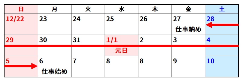2023年 令和5年 の正月休み・年末年始休みはいつからいつまで?何連休の年末年始。