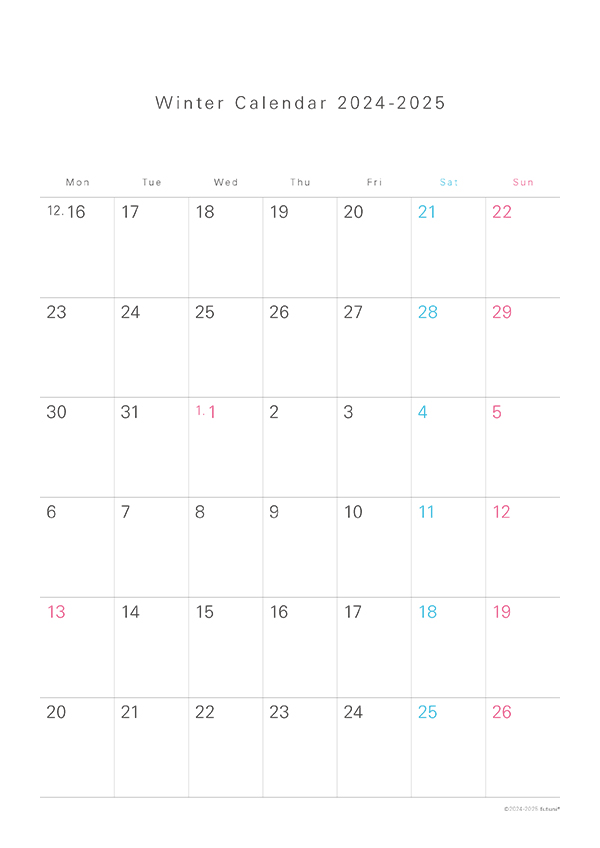 書き込みやすい 冬休み・年末年始カレンダー2025 無料ダウンロードフツ子とまなぶ。