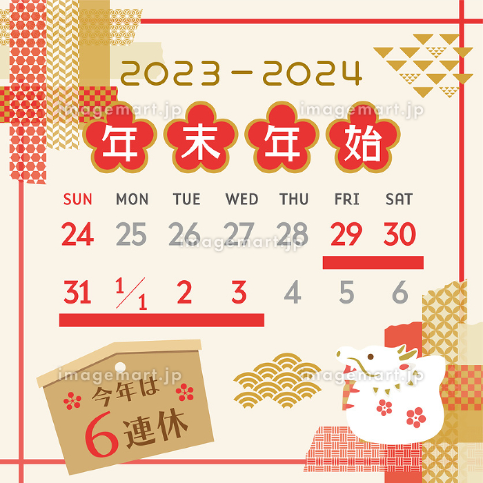 2023年・2024年 年末年始休みカレンダー イラスト素材7398022- フォトライブラリ。