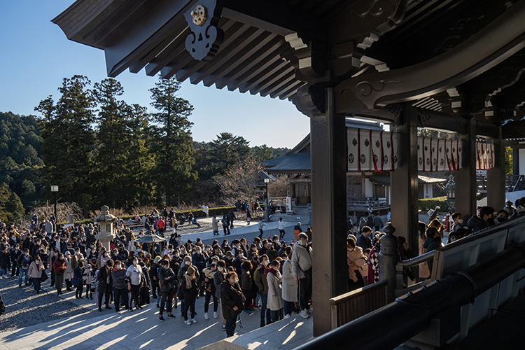 こちらは2024年1月1日の法多山の初詣の様子です。 たくさんのご参詣者にお越しいただきました。 2025年は法多山ができて1300年の記念の年となります。開創1300年記念事業として、愛染堂の建立や黒塀などの新設工事を進めており、春には完成する予定です。 完成後には。