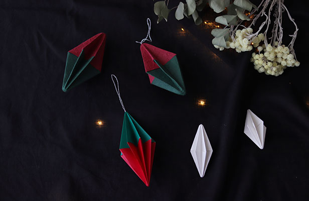 折り紙でできる手作りクリスマスオーナメント ダイヤモンド編nunocoto。