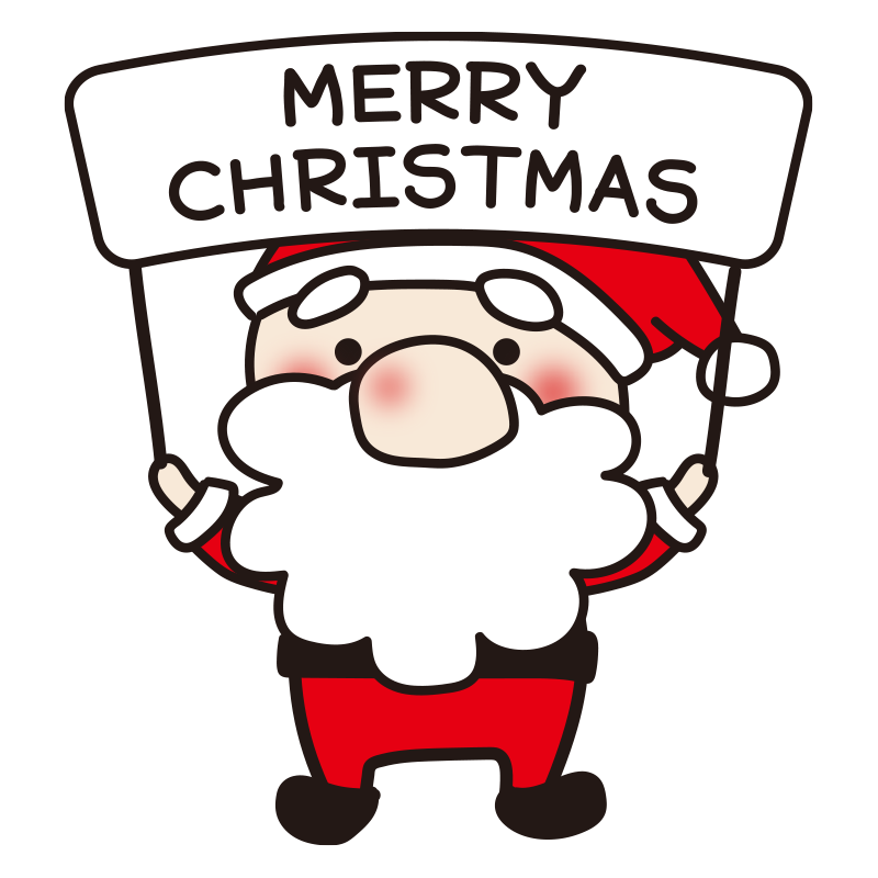 メリークリスマスの文字を持っているお鼻の大きなサンタクロースの無料 フリー イラストかわいい 手描きの無料素材「てがきっず」保育園・小学校・介護施設にぴったりのフリー素材イラスト。