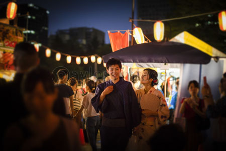 お祭りを楽しむ浴衣姿のカップル - 商用利用可能な写真素材・イラスト素材ならストックフォトの定額制ペイレスイメージズ。