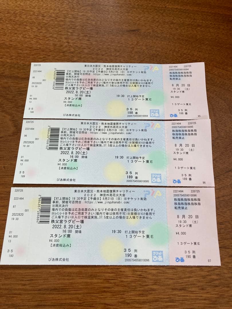 神宮外苑花火大会2022チケット3枚連番。