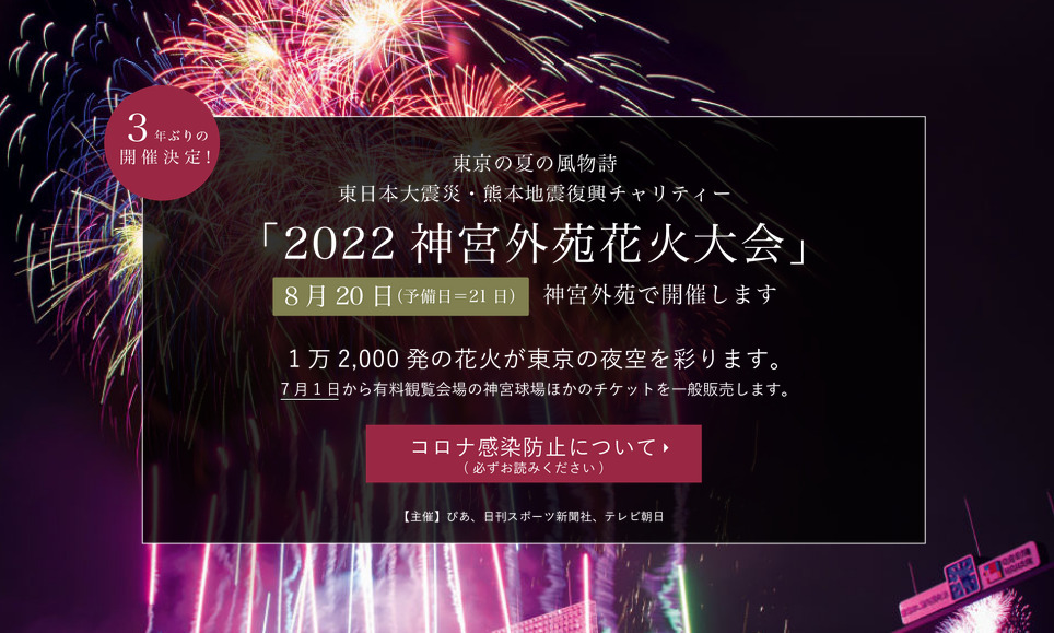 2022 神宮外苑花火大会」3年ぶり開催、花火12,000発×コンサートの都市型花火大会 - ファッションプレス。