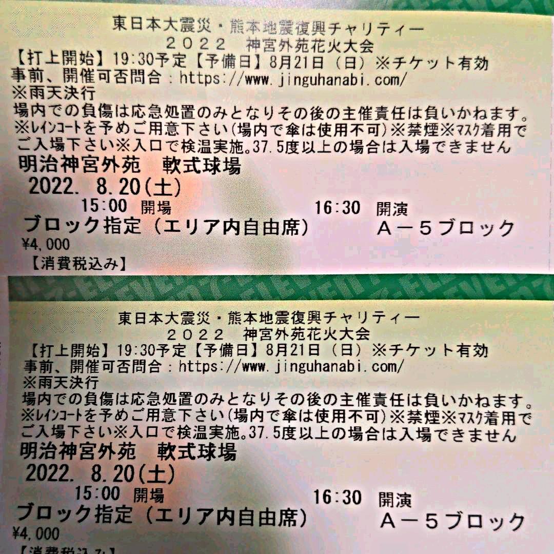 2022 神宮外苑花火大会 SS席2枚。
