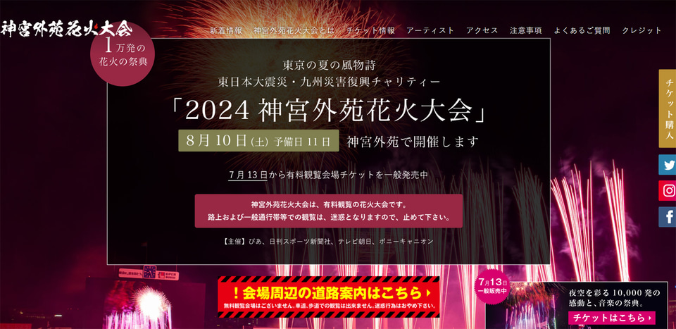 チケット情報2025 神宮外苑花火大会。