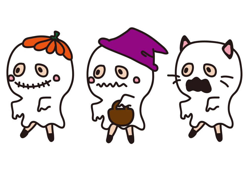 かわいいお化けたちのハロウィンイラスト無料のフリー素材 イラストエイト。