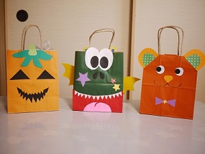 ハロウィン製作ー簡単バッグ お菓子入れ 画用紙で年齢別アレンジ紹介。