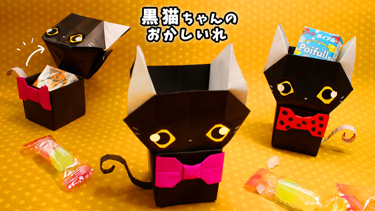 ハロウィン折り紙 黒猫ちゃんのお菓子入れ 小物入れ mama life blog。