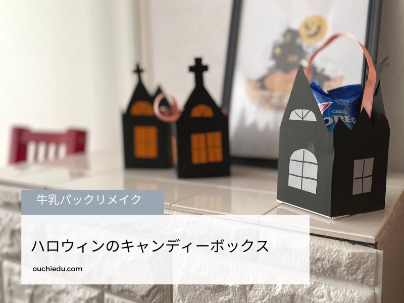 ハロウィン簡単工作「お菓子入れ」+絵本コミュ出版裏話②「魔法使いになろう!手作りハロウィン」はにゃ!☆手作りおもちゃ箱☆ 牛乳パック等で簡単工作。