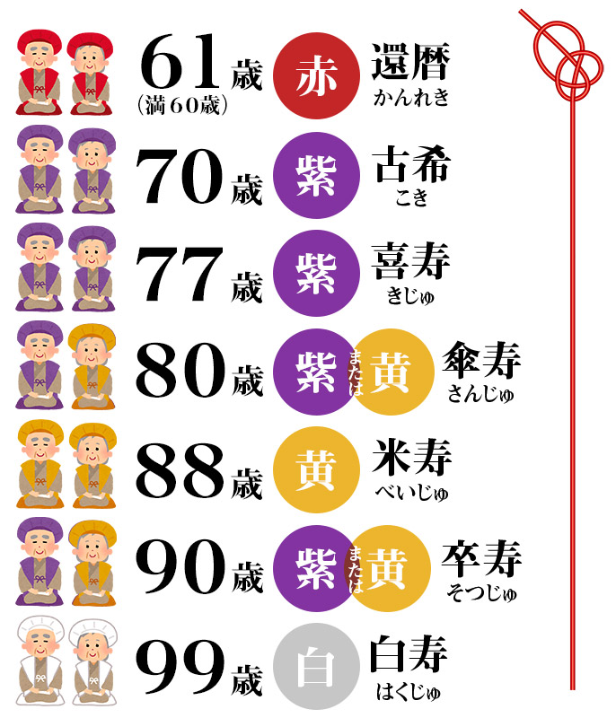 2025年版長寿祝い早見表。年齢や色、由来までお伝えします! – 槇田商店公式ショップ。