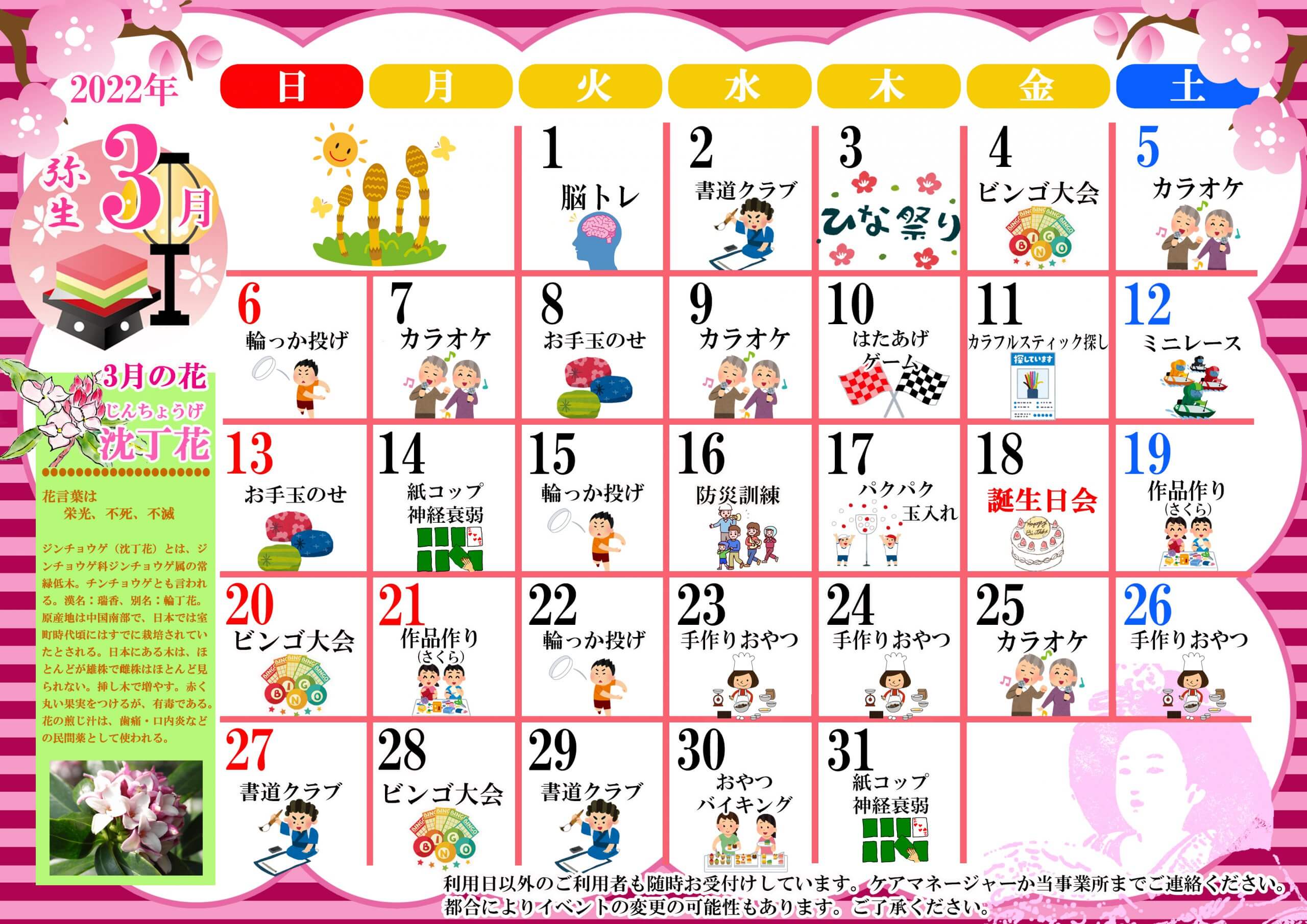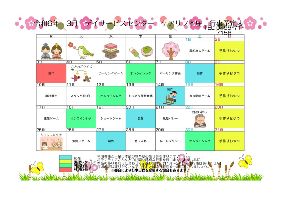 デイサービスの3月の行事予定表を掲載しました。 - 在宅介護のライフプラン埼玉県深谷市・本庄市・群馬県藤岡市の介護事業所。