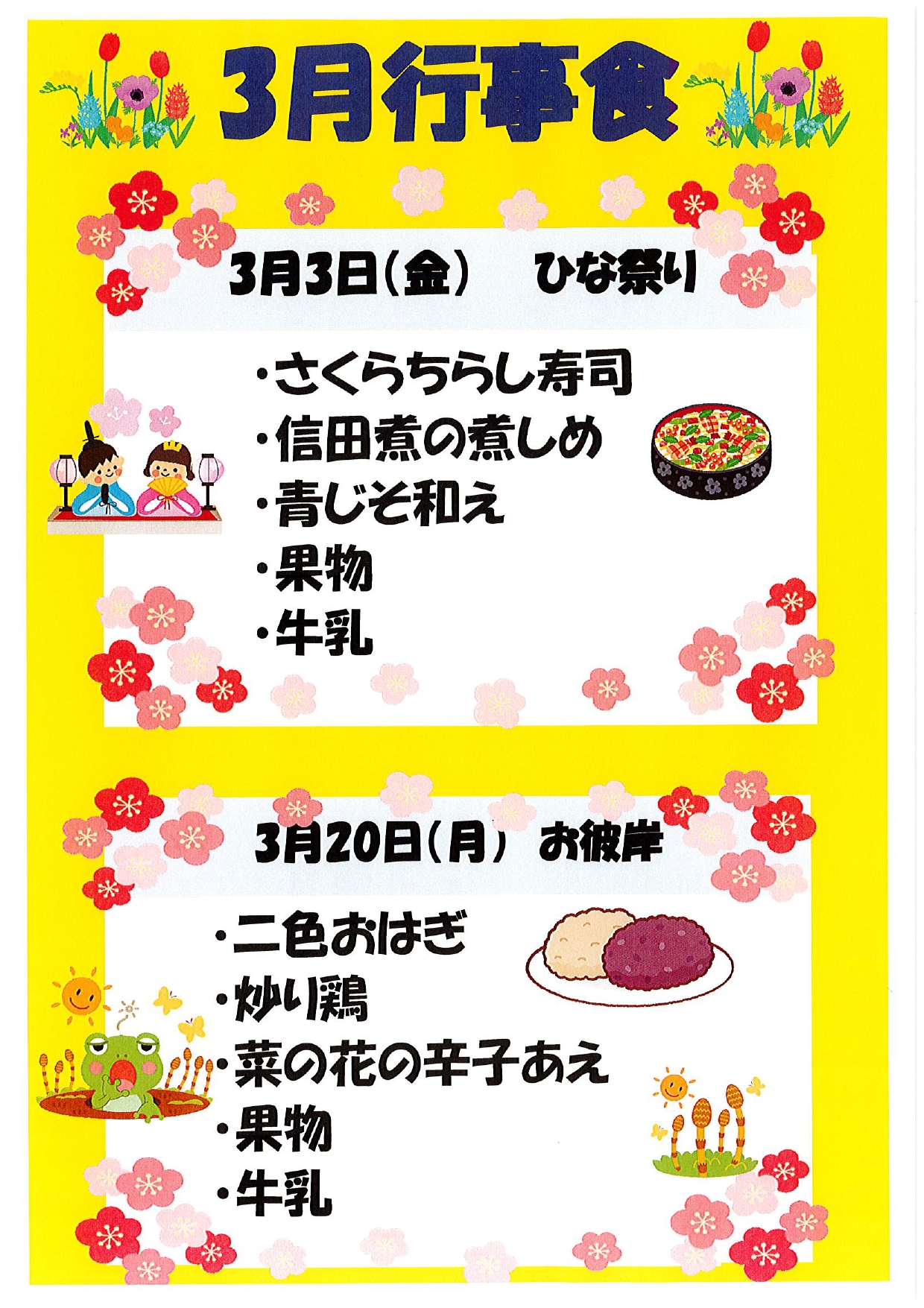 3月行事食社会福祉法人創明会 千葉県船橋市。