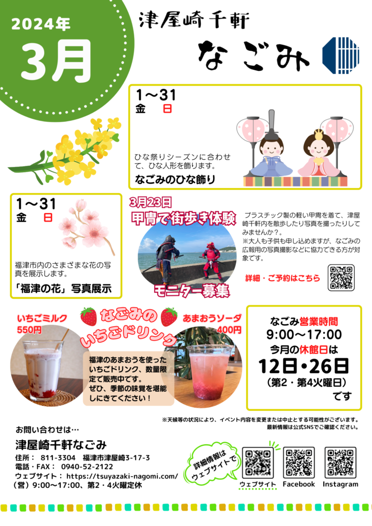 七福 3月の行事カレンダーです。名古屋で介護・福祉事業を展開する愛生福祉会。