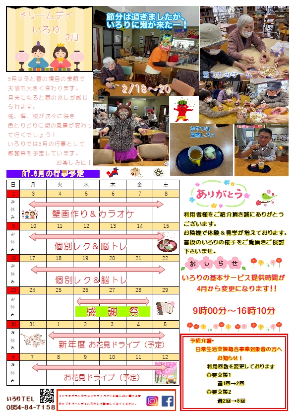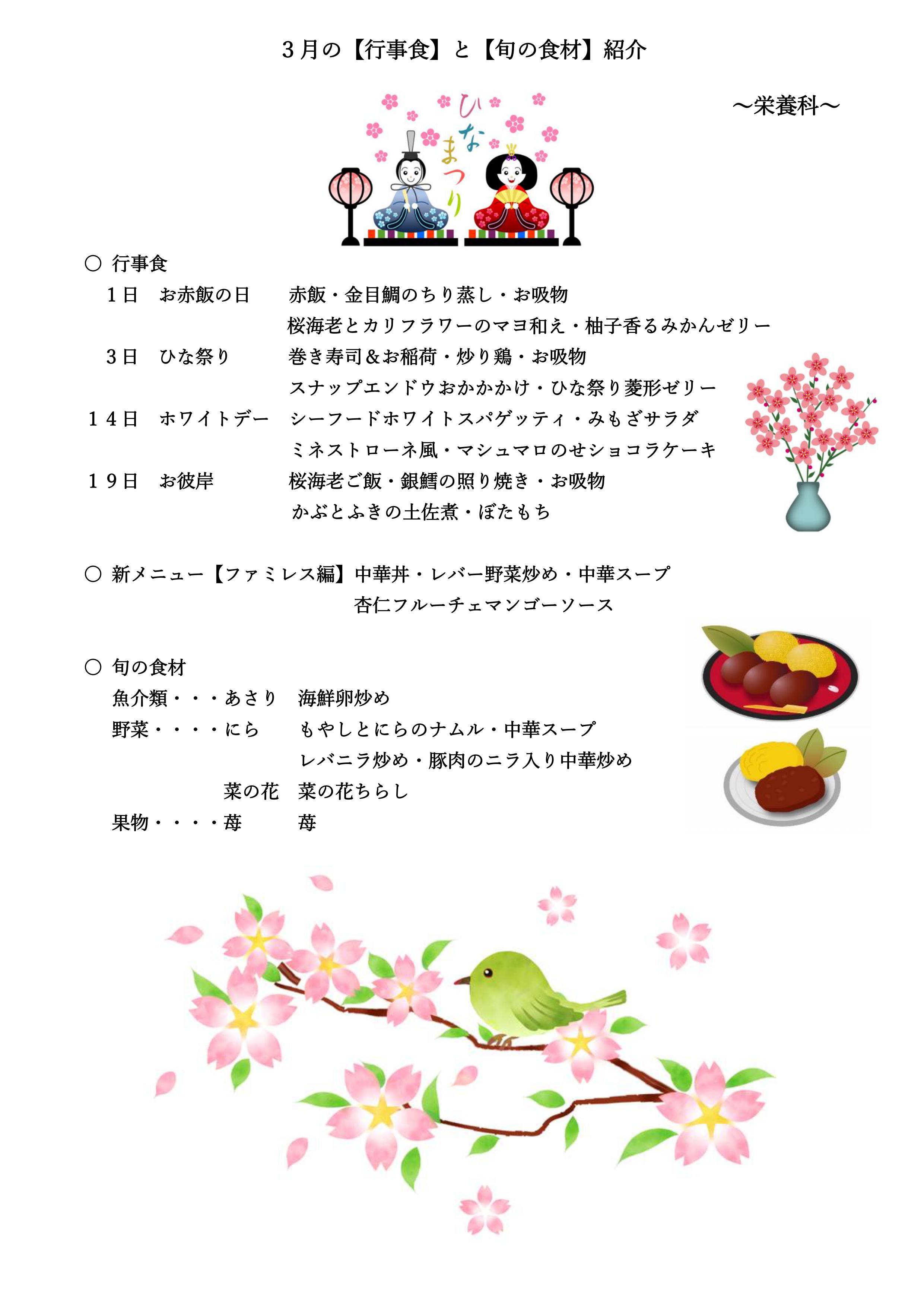 3月の行事予定です! - 特別養護老人ホーム花見の里。