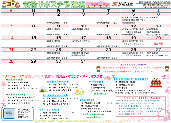 デイサービス3月行事予定表を掲載しました。 - 社会福祉法人広島友愛福祉会。