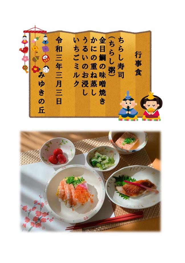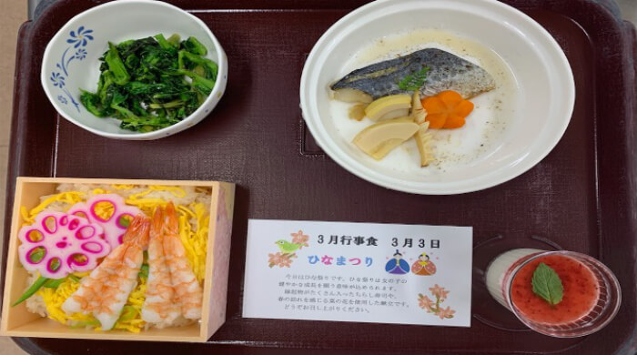 3月の行事食 ひな祭り - ブログケアユー株式会社 博多工場。