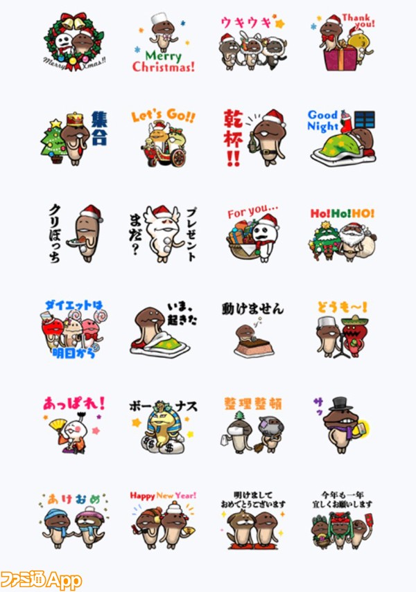 ビーワークス、新作LINEクリエイターズスタンプ「なめこのクリスマス&お正月」の配信を開始gamebiz。