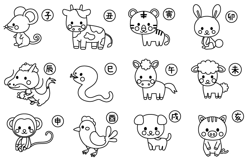 お正月の塗り絵イラスト かわいい 無料 フリー87704素材Good。