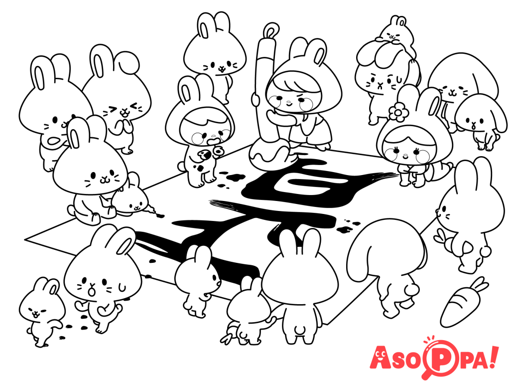 ぬりえ 季節うさぎと書き初め 正月無料ダウンロードOKな塗り絵です ASOPPA!レシピ - あそっぱ。