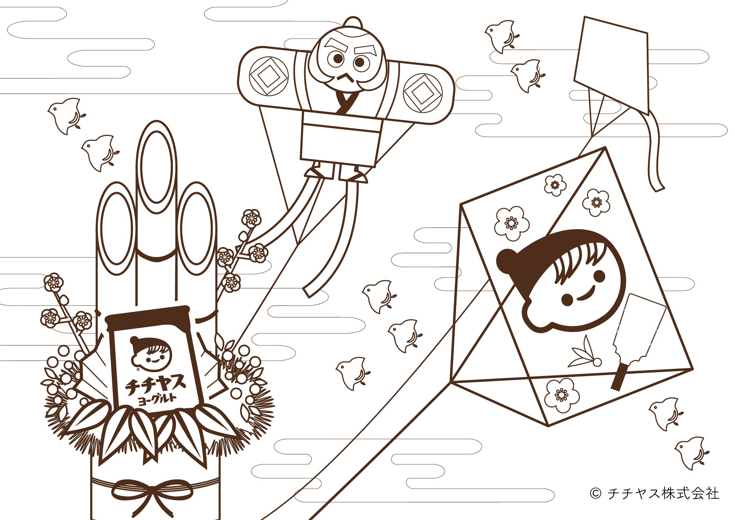 チー坊のぬりえ お正月 が公開されました♪チチヤス株式会社。