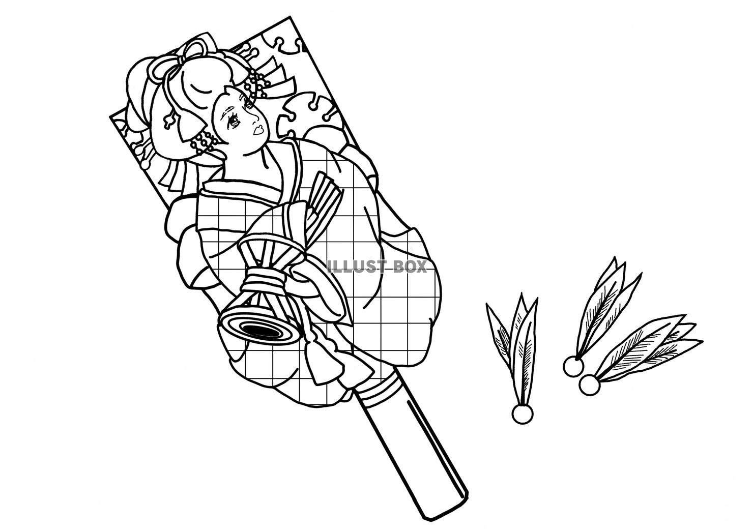 正月ぬりえ 羽子板:イラスト無料。