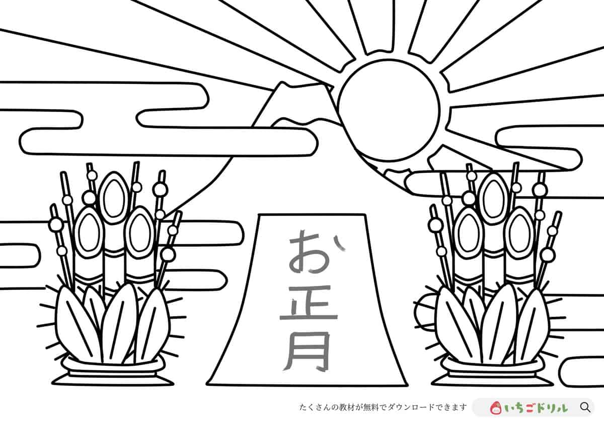 お正月ぬり絵_02 あそび・ゲームのプリント素材を無料ダウンロード。