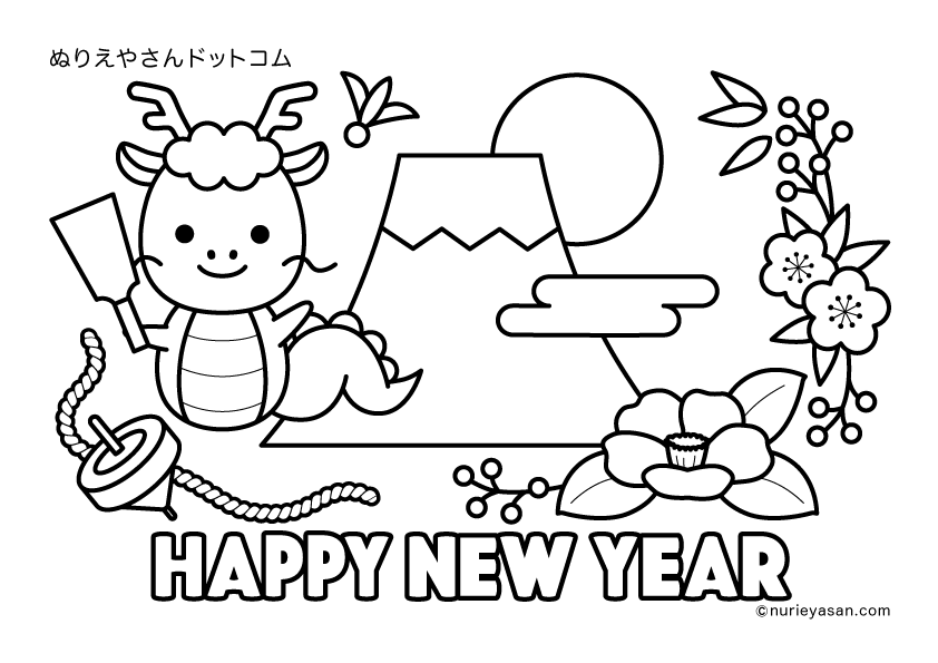 お正月・新春のぬりえ素材ぬりえパーク。