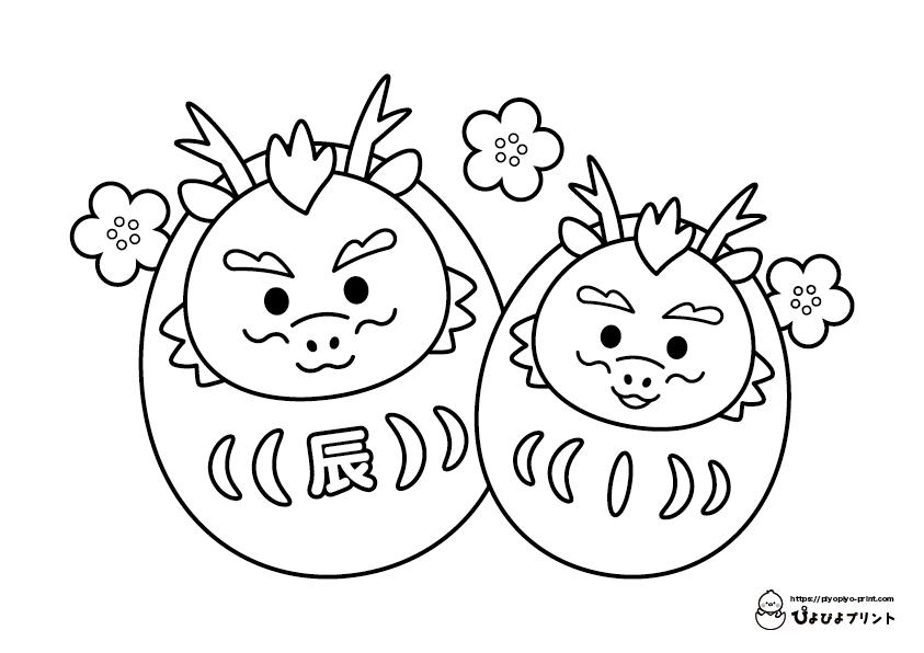 2024年辰年の絵馬 正月ぬりえぴよぴよプリント。