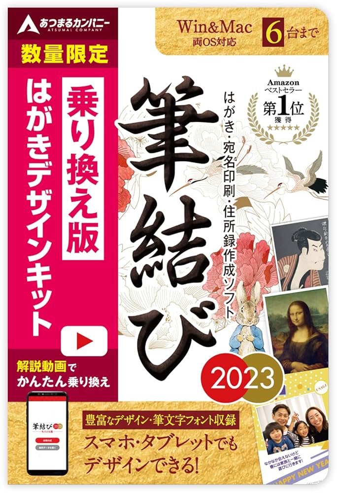 Amazon.co.jp: あつまるカンパニー 筆結び 2023 Win&Mac はがきデザインキット乗り換え版 6ライセンスダウンロードカード版 Win mac 両対応 宛名印刷 住所録 年賀状作成 ソフト はがき作成 : PCソフト。
