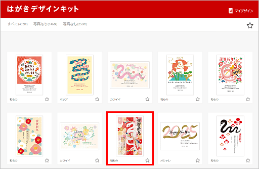 郵便局のはがきデザインキット2025を使って、年賀状を作成しよう! 写真無し年賀状の作成。