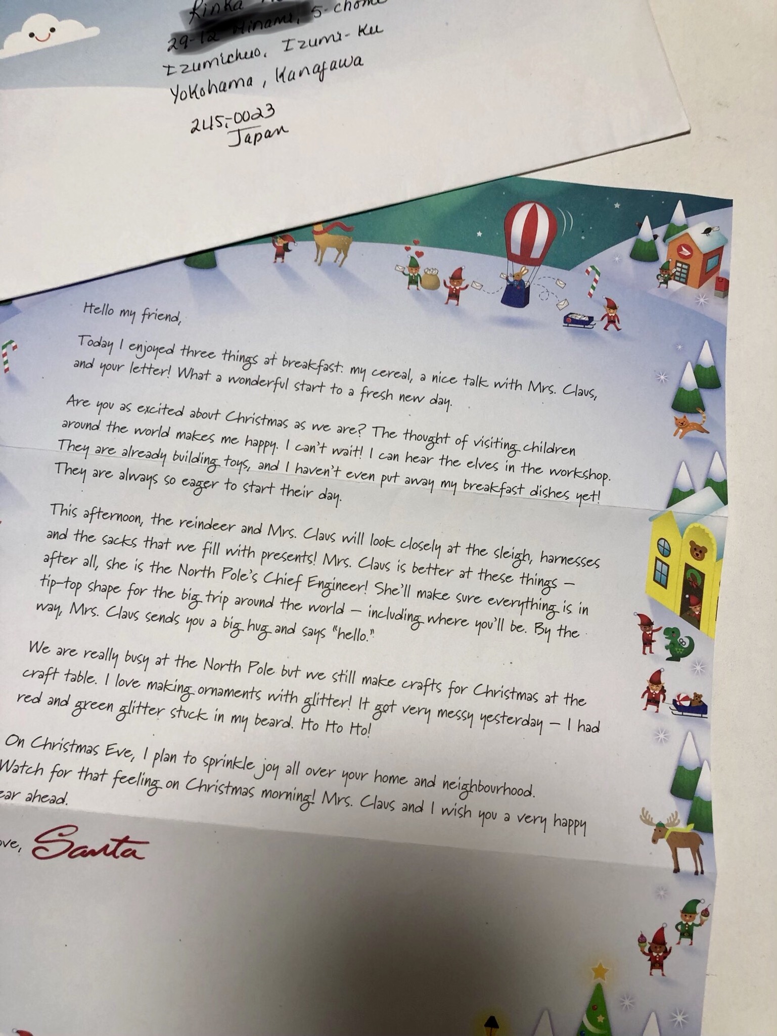 yukiおはようございます。 毎年恒例、 サンタさんへのお手紙 シーズンがやってまいりました💌 年々内容がインプルーブしていてこれなら作文コンクールも受賞するな と 文章力なのか、 欲しいものへの熱量強め なのか どちらもいい感じに伸びてきています↑まるで。
