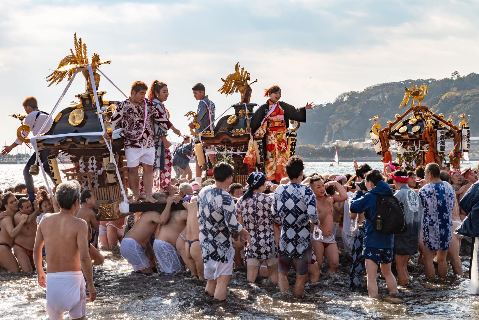 寒中神輿錬成大会」新成人を乗せた神輿、冬の海へ観光経済新聞株式会社オマツリジャパン。