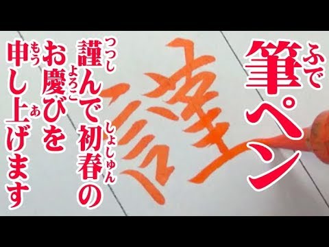 筆ペン書道 「謹んで新年のお慶びを申し上げます」の書き方 年賀状。