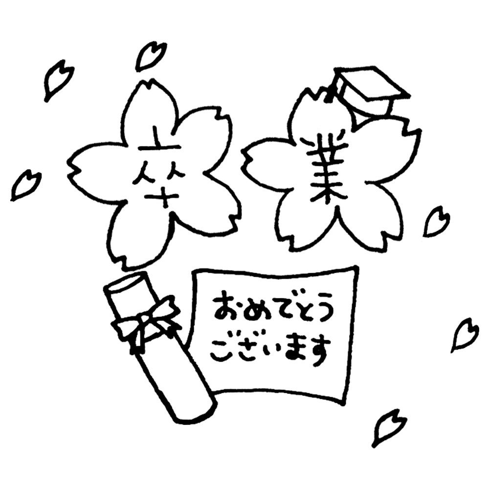 桜♪かわいい! 卒業おめでとうございますの文字 漢字イラスト商用フリー 無料 のイラスト素材なら「イラストマンション」。