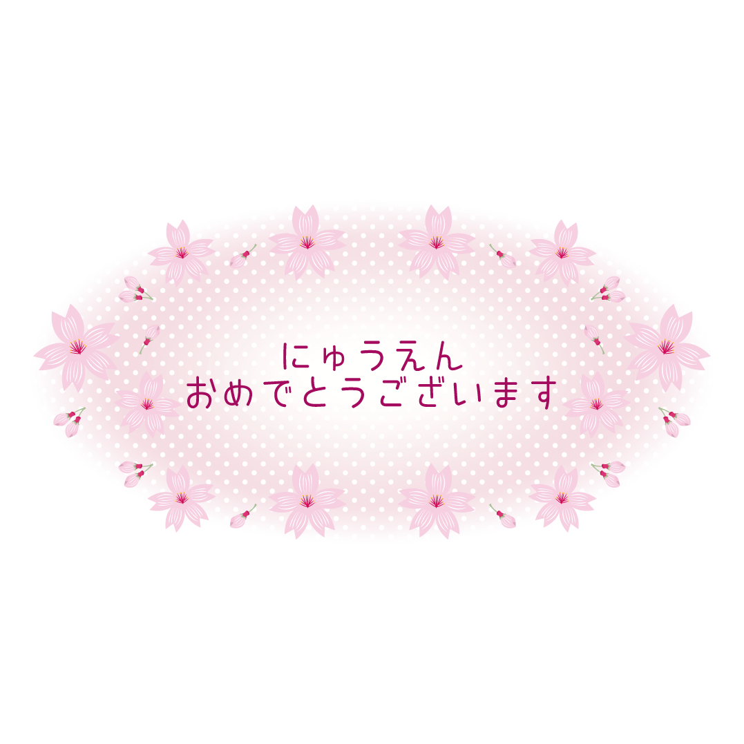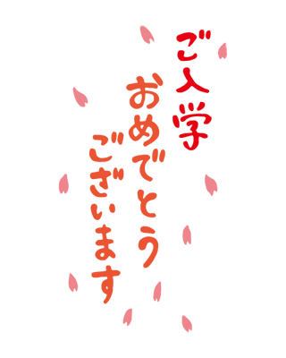 イラスト:「ご入学おめでとうございます」の文字。