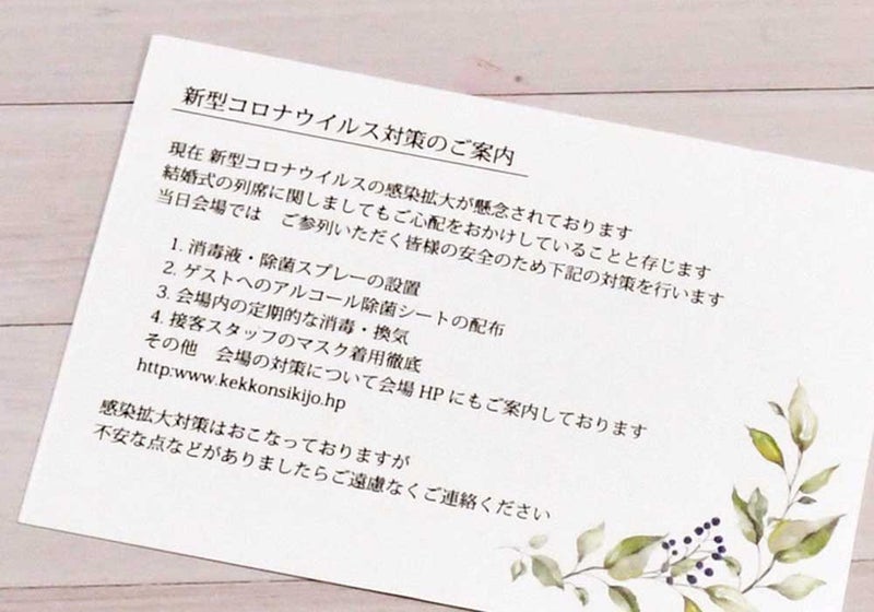 withコロナ 招待状に必須アイテム?感染症対策カード!結婚準備応援ブログ ウェディングアイテムファルベ。