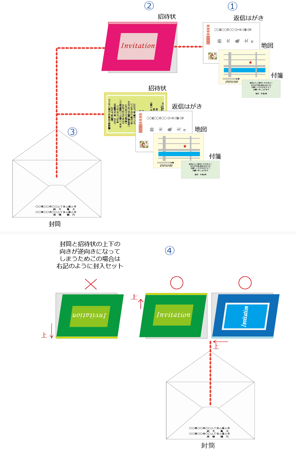 画像で解説 結婚式招待状の封筒への入れ方 全8パターンアンシェウェディング。
