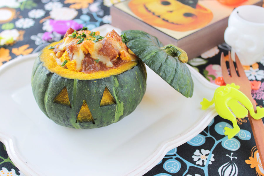 ハロウィンレシピ かぼちゃの器のクリーミーカレードリア。